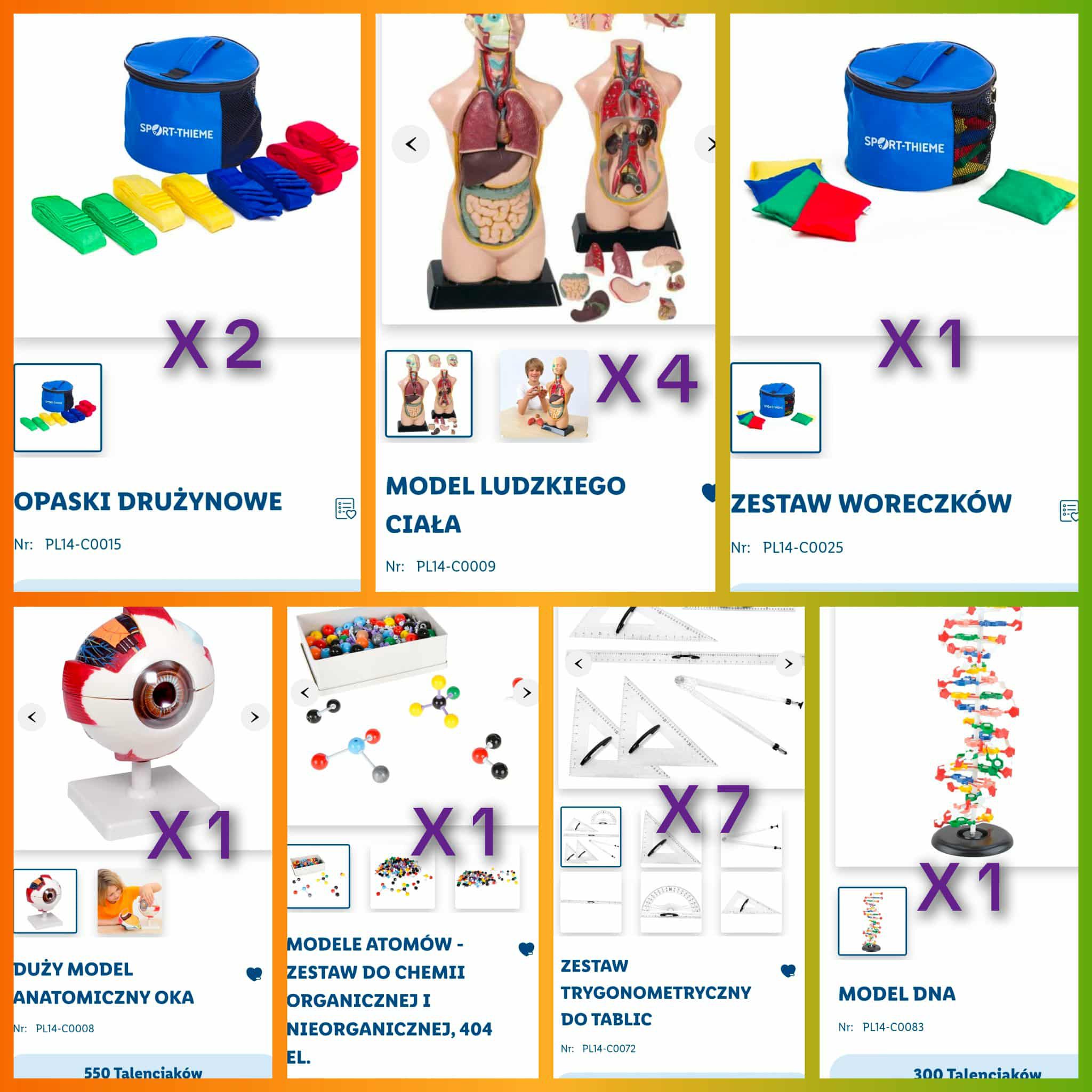 Zakończyła się możliwość dopisywania Talenciaków do konta szkoły. Dzięki bardzo dużemu zaangażowaniu Uczniów, ich Rodzin, Nauczycieli zebraliśmy aż 11333 Talenciaki. Zakupiliśmy za to 18 pomocy dydaktycznych.